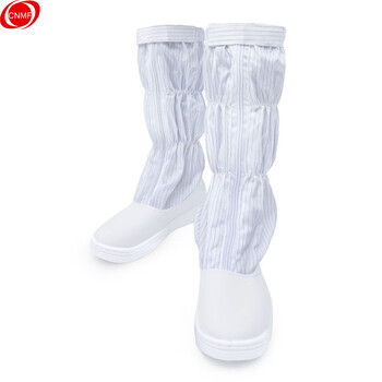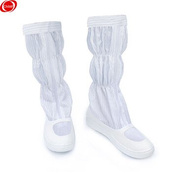 谋福CNMF无尘鞋长筒洁净鞋车间白色高筒靴加厚软底男女防尘鞋防静电工作鞋(PVC长筒透气网白色条纹38码)184